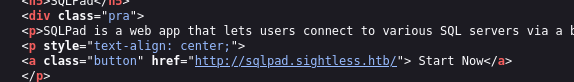 - Nothing much info on page source, but we do have a service SQLpad