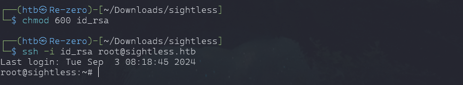 ssh -i id_rsa root@sightless.htb